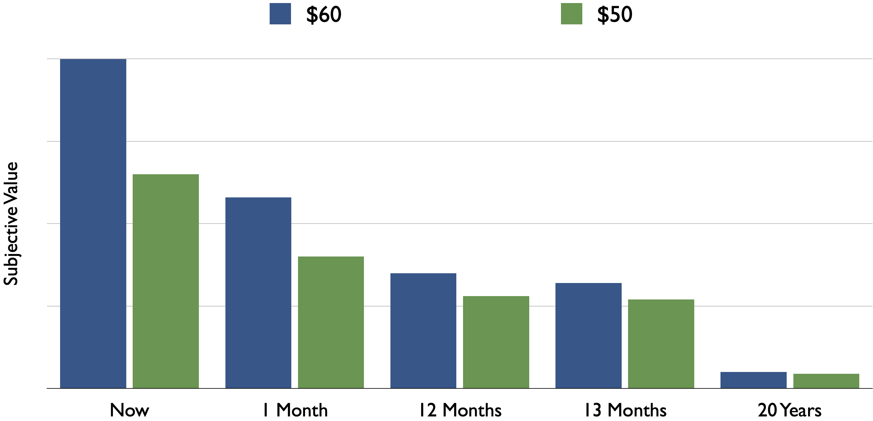 Temporal discounting of future money implies that the utility of money decreases with time.