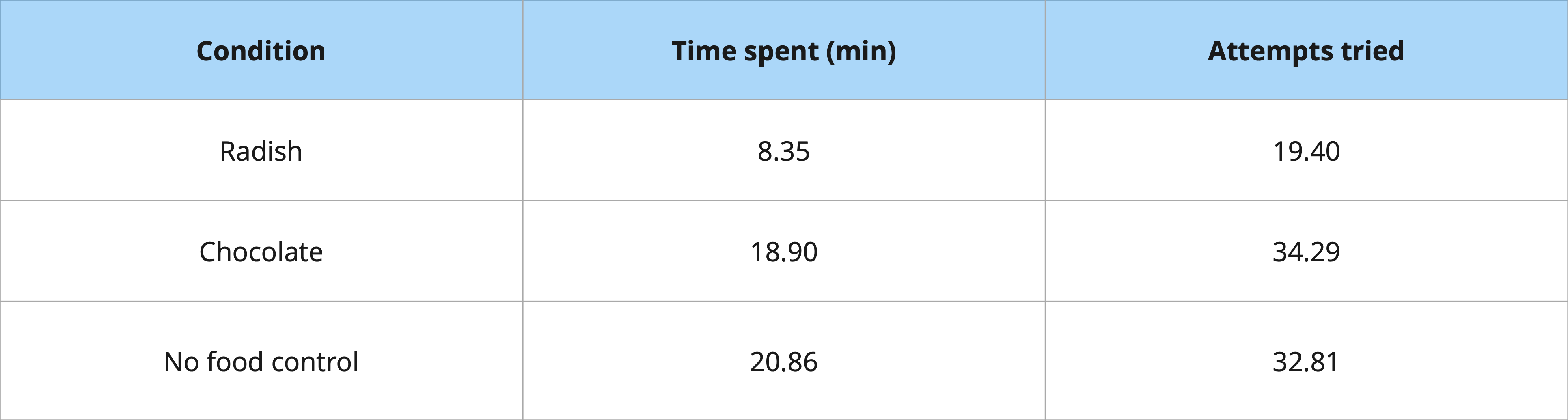 Participants were instructed to eat either radishes or chocolate chip cookies